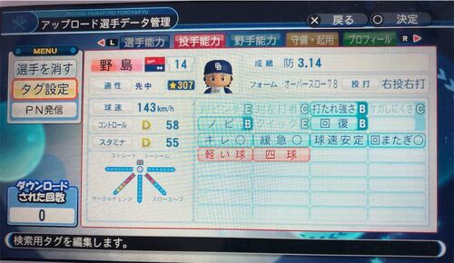 オリジナル選手、野島亮選手。 ノビのあるストレートと緩急のある変化球で相手を翻弄していく投手。 先発も中継ぎも出来る独立リーガーみたいな設定。 一応過去作リメイク。 結構頼りになる選手だったりします。 パワナンバー 11900 90472 18034 前回⇨329.企…
